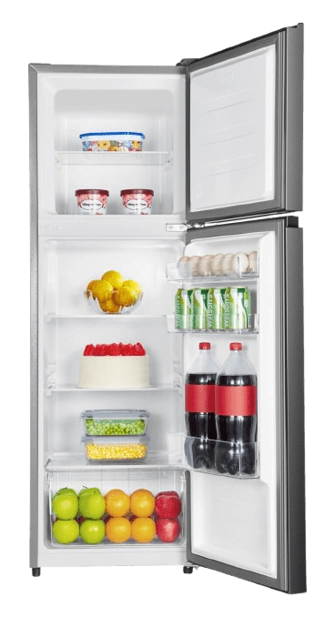 The Hisense 154L Double Door Fridge combines functionality and modern design to meet your daily cooling needs. With a top freezer and spacious refrigerator compartment, it provides enough storage for groceries, beverages, fruits, and frozen foods.